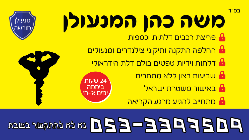 אהלן! שמי משה ואני המנעולן הקבוע שתעבדו איתו…